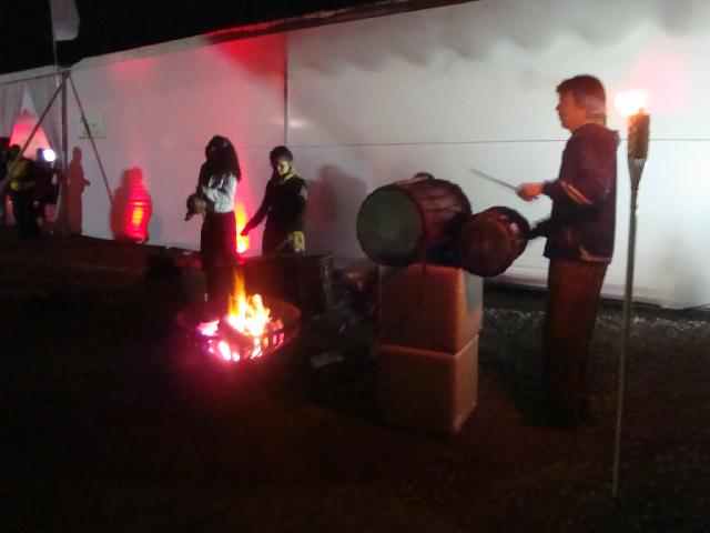 Primer punto de descanso en el km 100. Mega producción con música, duchas, comida...