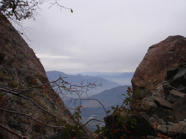 Finalmente en el portezuelo, con vista hacia el Este. Se ven nubes de lluvia a la distancia.
