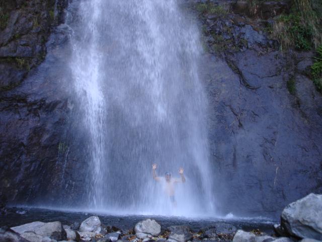 Ahora en pleno bajo el chorro! El agua pega fuerte en la cabeza y se siente como coscachos!