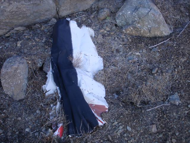 En la subida me adelanto y en un desvío encuentro estos restos del avión caído hace muchos años. Es un pedazo de lata, aparentemente cubierta del ala.