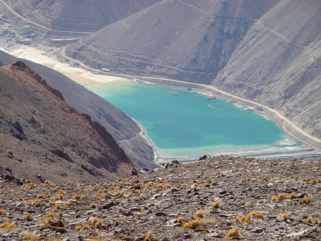 Una asomadita al tranque de relave de la Disputada. Lindo el color calypso. Una pena que sean puros tóxicos...