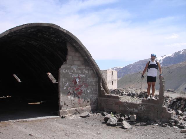 Aquí conversamos con unos cleteros que dejaron aquí sus autos y subieron a las termas del Plomo. Mucha nieve. Todavía no se puede llegar.