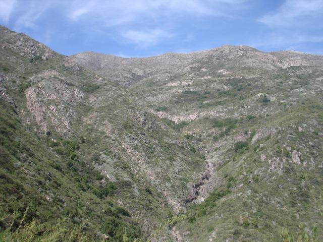Se debe rodear la quebrada por la izquierda, pasando por los pozones al fondo de la quebrada.