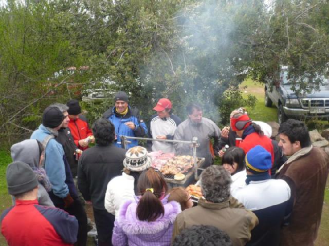 Grata convivencia y rica carne. Buen fin de entrenamiento antes de la lluvia.