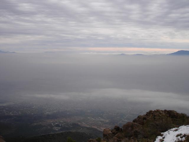 Amanece en Santiago. La mañana está heladita pero agradable para subir. Empecé a subir a las 8:53 y llegué al mirador a las 9:56. Me dolían las piernas y el trasero (Los glúteos digamos...). La clase de Pump del Viernes dejó su marca...y ayer corrí los 5K de la carrera de ex-alumnos del CSPN. Todo suma supongo... |