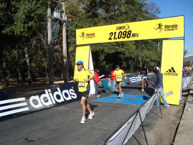 Parto muy tranquilo...En la pasada por el parque O'Higgins veo que voy muy rápido (4:50/min) (Esto de correr con el Forerrunner es increíble) y me calmo un poco...Paso a Nestor y no lo vuelvo a ver. Aquí paso por el portal de 21K en 1:49 aprox...Bastante bien, y me siento enterito...! |