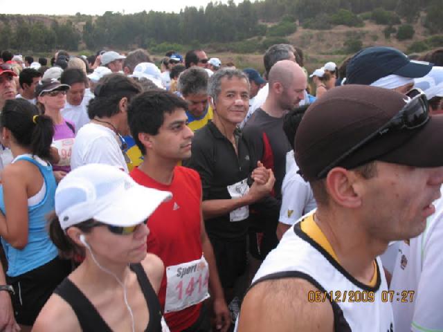 Probando el parche nasal. No sé si sirve ya que respiro mucho por la boca... Estreno la polera North Face por si hace frio, pero a esta hora ya está pasando .