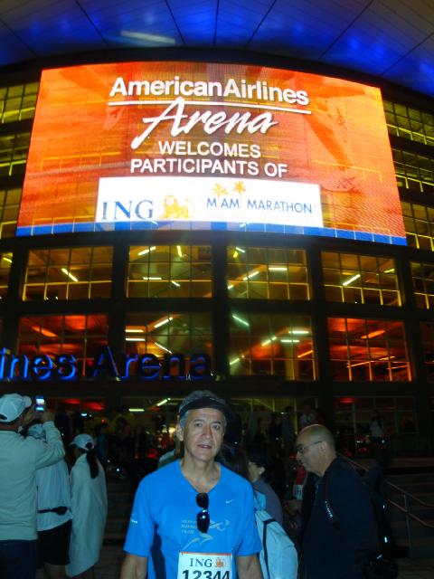 Ya en la partida en el Bayside. La carrera parte tempranito (como a las 6am..). A las 3:20am estoy levantándome para ir al punto de partida....Una gentil runner peruana me saca esta foto. No veo a ningún 'shileno'...