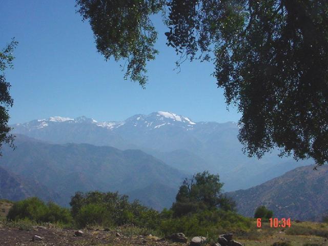 Una breve subida al Alto del Naranjo. No llevo cámara...Esta es una foto del 2002, pero todo está allí mismo. Incluyendo al Plomo dominando el paisaje. 59 min intensos de subida. Todo bien pero...Tabanos!!! Joden durante la subida, y no dejan estar en los quillayes! Arranco para abajo rapidito. Hay que volver luego en esta mañana de elecciones... |