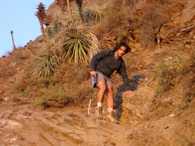 Ya bajando, Pablo maniobra justo bajo la canaleta.