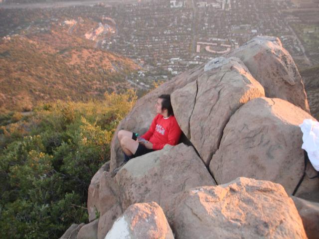 A pesar que hizo calor hoy (casi 33º), arriba en la tarde hay una brisa 'fresquita'. Ricardo busca refugio entre unsa rocas.