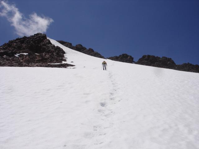 Ya en el nevero final, la pendiente es fuerte pero la caminata segura.