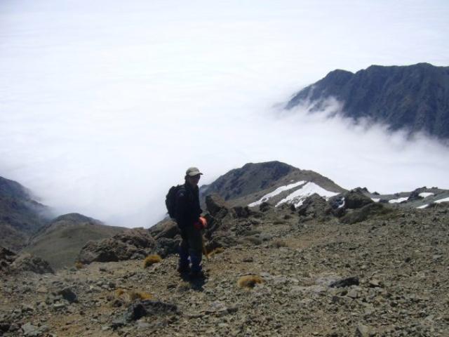y yo con el mar de nubes hacia Santiago. Linda foto!