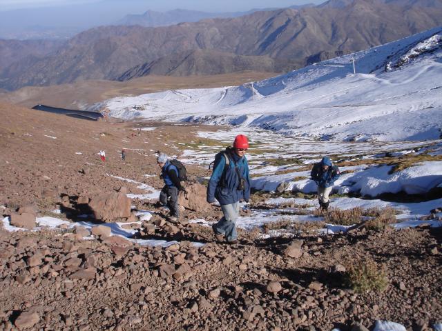 Comenzamos a caminar desde los estanques al fondo, acortando camino hacia Piuquenes.