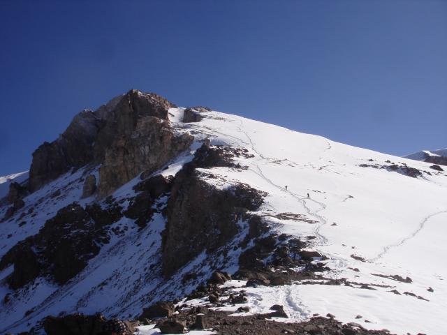 La subida de la Falsa Parva se vé potente. Las huellas en la nieve suben en directísima...