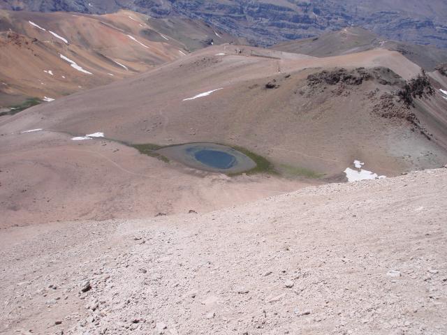 El ojo penetrante de la laguna Franciscano mientras bajo el acarreo.
