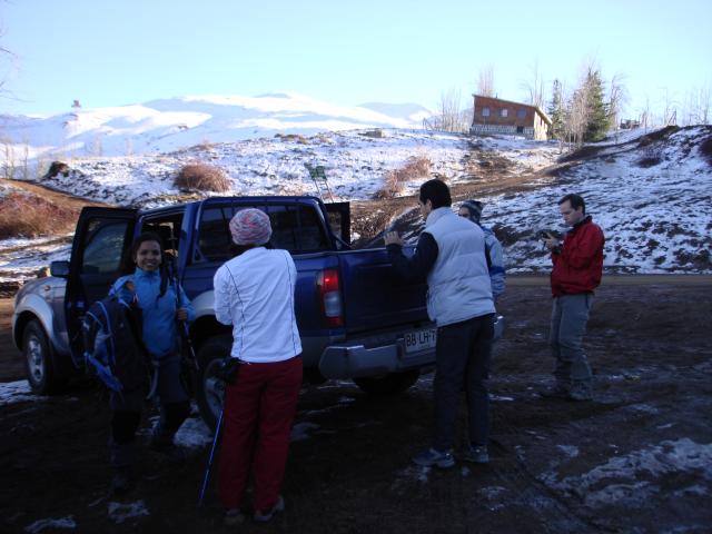 La mañana está despejada y luminosa, pero heladita...Ivonne, Andrea preparan sus mochilas.
