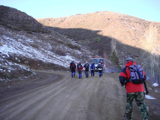 Partimos caminando a las 9:50. Subimos por la quebrada al fondo.