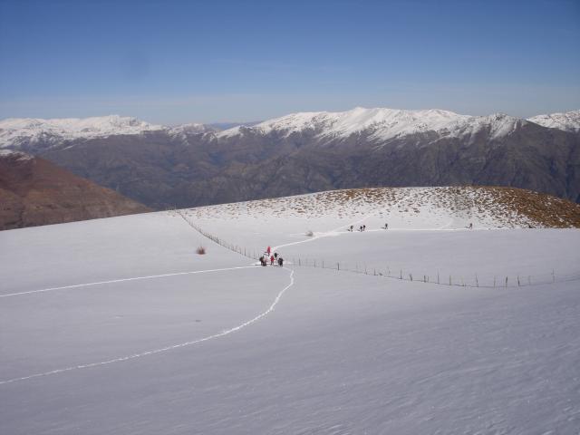 Ya subiendo hacia el filo. Detrás se ven algunos rezagados pasando la cerca.