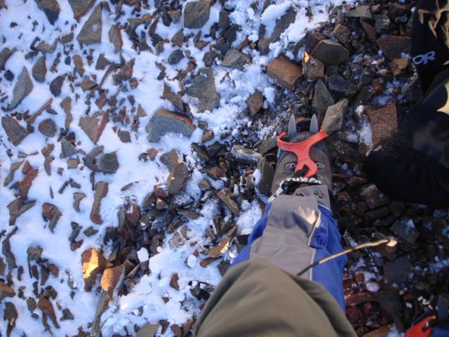 Todo bien, salvo este crampón que se me sale, por suerte ya al salir del glaciar.