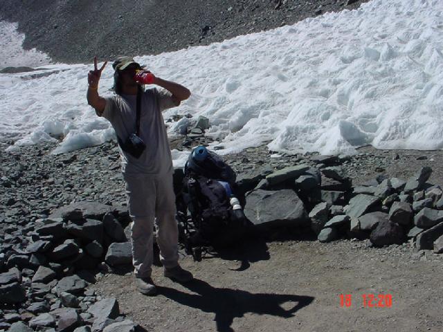 LLegamos a la Hoya y elegimos esta pirca junto al Glaciar. No hay mucho espacio en la Hoya ya que hay mucha más nieve que de costumbre.