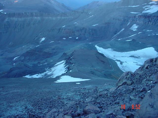 LLegamos hasta la parte superior del acarreo. Ya amaneció y hace mucho frio.