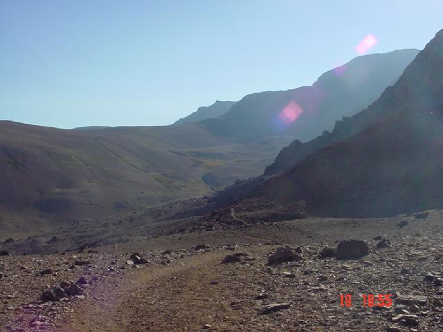 Mirando hacia la Falsa Parva, rumbo al auto. Ya pasamos por Piedra Numerada y estamos camino al Estero Las Yaretas