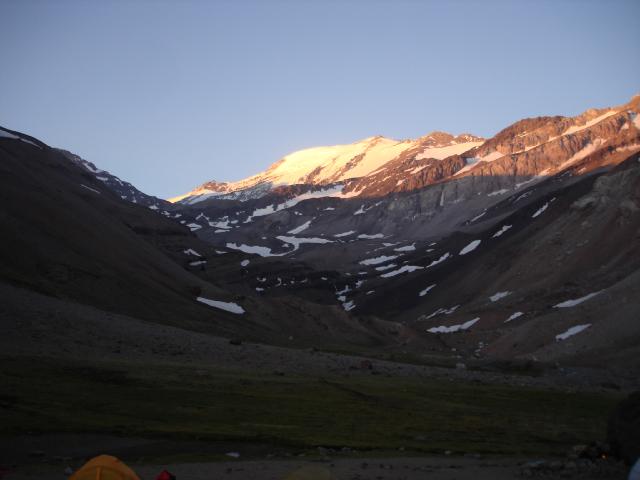 La vista clįsica y linda vista del atardecer del Plomo desde Piedra Numerada.