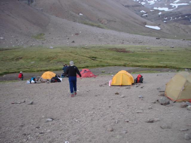 Un grupo de cuatro suizos y cuatro chilenitos ya están acampados (y que no se pescaban mucho...). Aquí conozco a Jorge y su grupo que me recibe cariñosamente con un jarro de chocolate caliente! Qué maravilla!