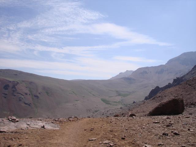 A lo lejos el estero de las llaretas y la falsa Parva a la distancia.