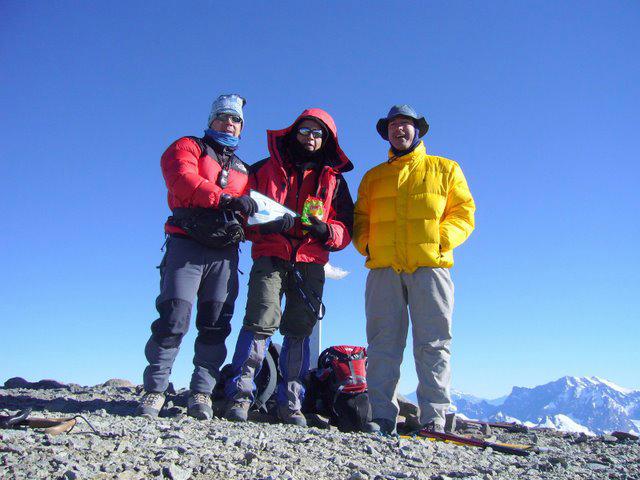 Otra foto de cumbre, con el banderín malayo y la bolsa de frugelé citric (imperdíbles...)