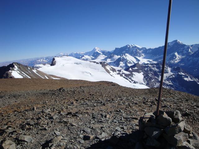 8:45 y estoy en la cumbre. El Aconcagua al fondo.