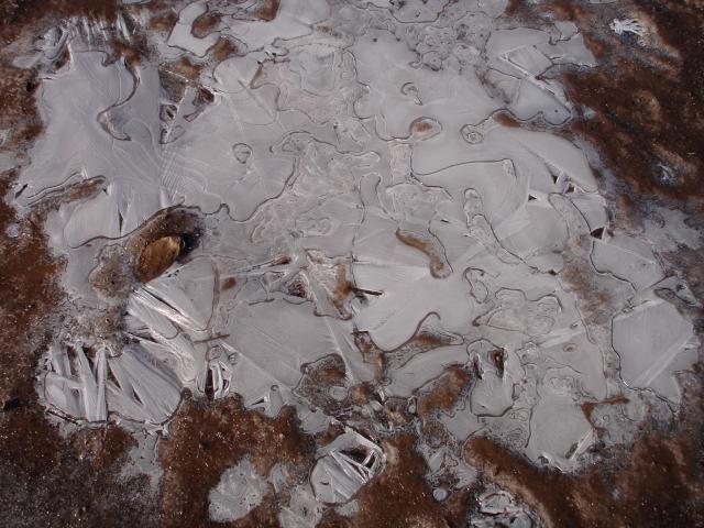 Curiosas formas en el hielo de una charca congelada.