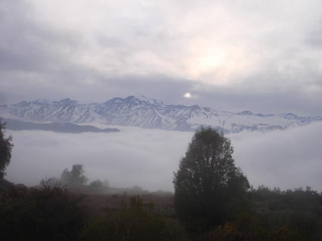 Una miradita al grupo del Plomo. El sol apenas alumbra detrás de las nubes.