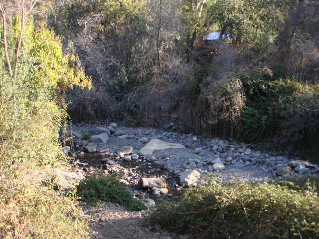 El arroyo de la cascada pasa paralelo a la calle, casi llegando a Valenzuela Puelma.