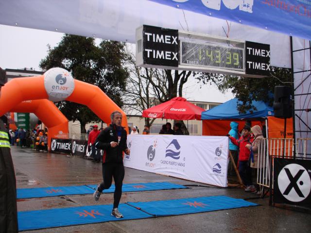 Cruzando la meta. 1:43:37 tiempo de chip. Mi mejor tiempo en 21K desde Viña, aunque esta es más difícil. Muchas subidas! Y mucha lluvia!
