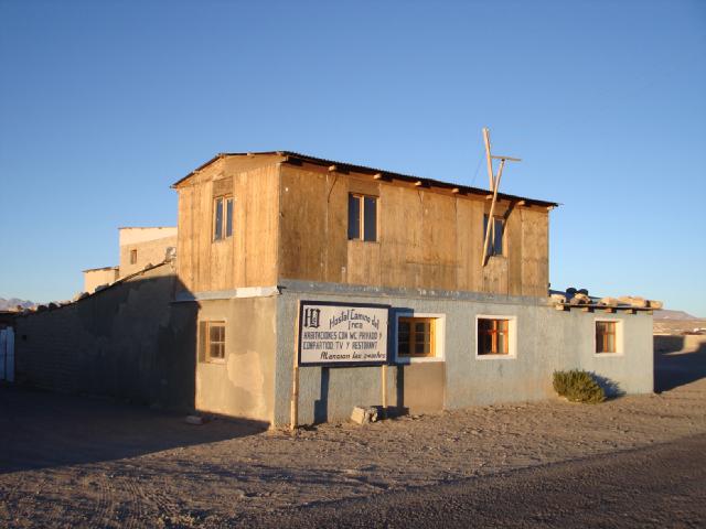 Nuestra posada en Colchane, donde comimos un rico arvejado de guanaco acompaņado de quinoa (21/8 7:05am)