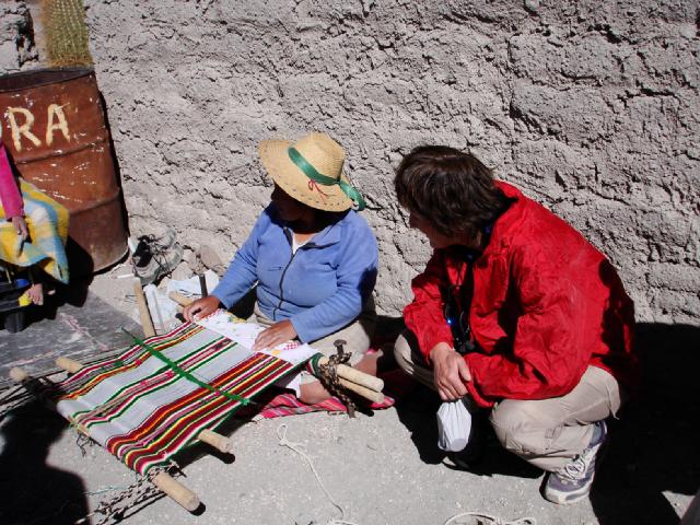 En Esquelga, visitando a la tejedora del telar de cuatro estacas.