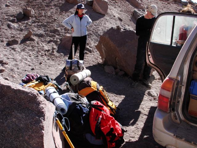 El auto llega hasta aquí, a los 5200 mts y comenzamos a buscar un base más alto.