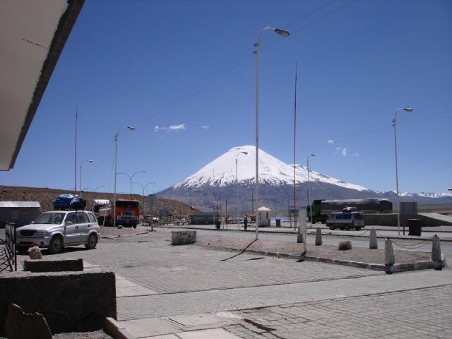 Una vista del Parinacota desde el complejo de Tambo Quemado