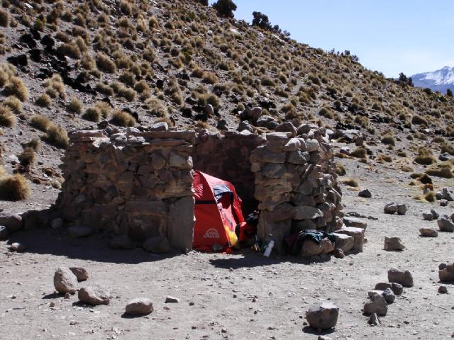 Armamos carpa en la pirca, por siaca. Paty aprovecha de dormir siesta.