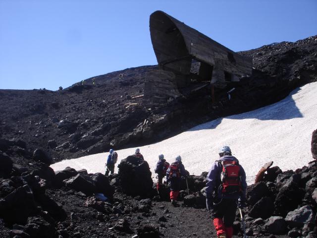 Retomamos la caminata y pasamos frente a la 'catedral', restos de una instalación de andariveles destruída por el volcán.